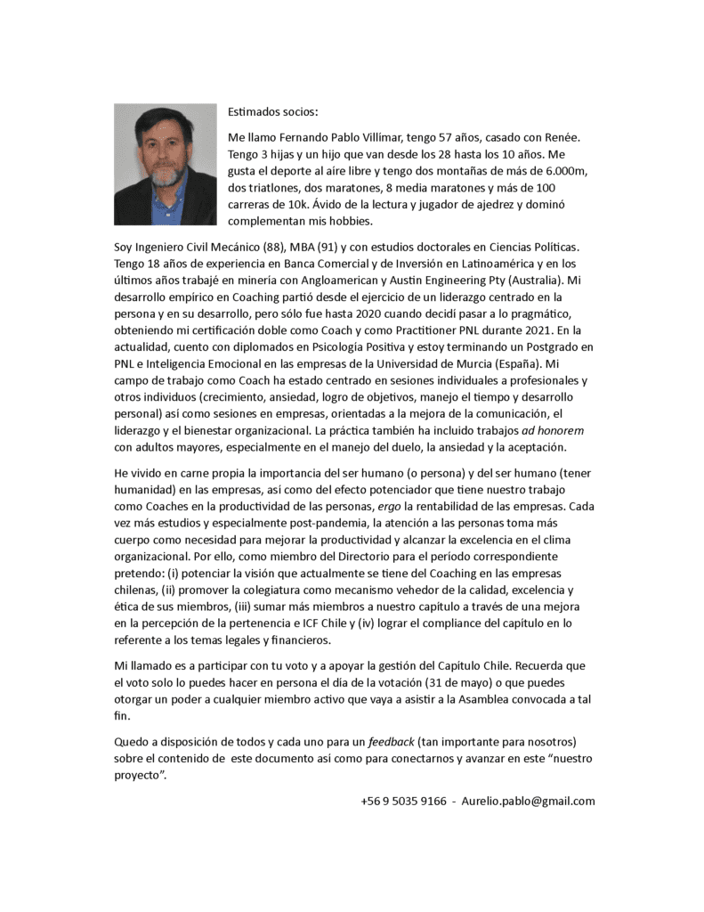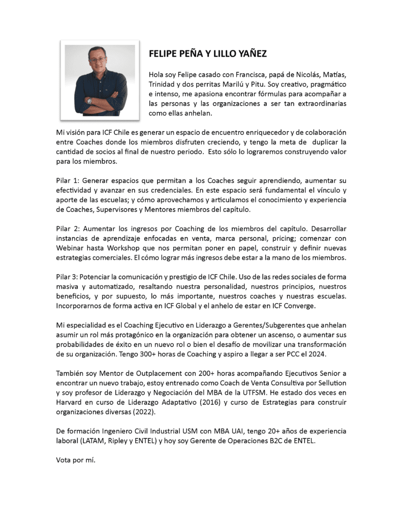 Te invitamos a conocer a los 12 coaches postulantes al nuevo directorio de ICF Chile,periodo 2023-2025
